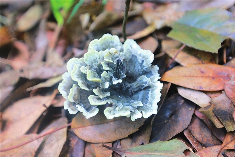 广东河源大桂山省级自然保护区划分为核心区、缓冲区和实验区3个功能区,是新丰江水库周边重要的生物多样性宝库。科研人员在野外核心区调查时,发现了一种特殊菌类,并拍摄了照片。经过资料核对和林业专家鉴定,该菌类为干巴菌,是珍稀野生食用菌,学名为绣球菌,对生存环境要求高,在广东鲜少见到,它的生长进一步表明大桂山保护区森林生态系统稳定。